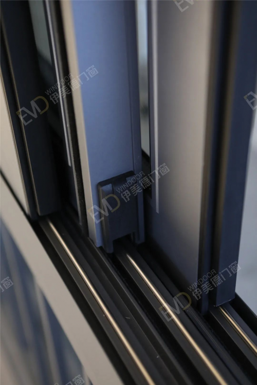 鋁門窗廠伊美德新一代斷橋推拉窗繼續(xù)升級性能設計,高低軌+高擋水邊+隱藏式排水設計,排水順暢快速,防止積水和倒灌,大大提高抵抗風雨能力。
